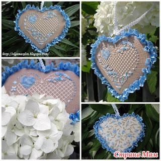 Французские узелки даны схематически. Тут вы можете дать волю иголке)))) Сердце внутри Сердца выполнено болгарским крестом.