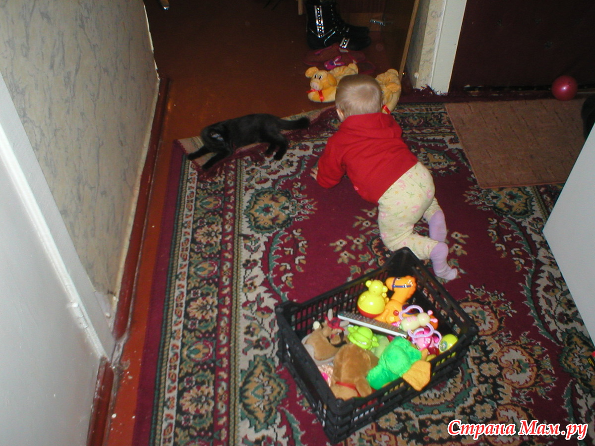 пополз-в 4-5(между гдето) мес., причем ярко-сразу уполз под кровать и ударился об плинтус