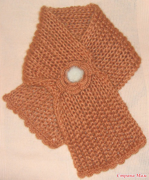 Пряжи на длинный шарф не хватило, поэтому придумался такой цветочек - крепление для шарфа.