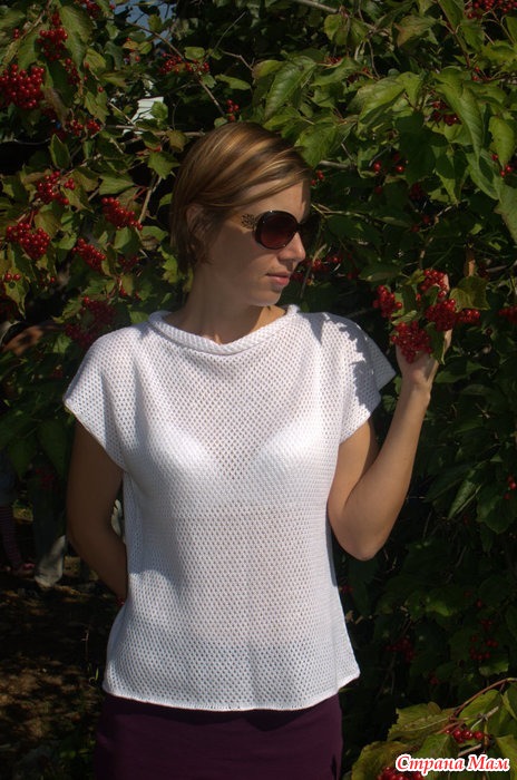 Пробовала вязать панчлейз, взяла по-моему самый простой узор. Но намучилась я с ним. С одной стороны постоянно слетали петли. Но все же я решила довязать. Воротник вязала одновременно, хотела чтобы он немного стоял. Но пряжа мягкая, пришлось так выйти из положения. Пряжа хлопок индонезийский, вставляла в 3 и 1 нитку. Плотность 6. Обвязала столбиками без накида.
