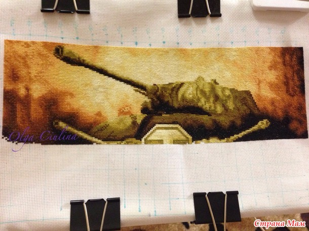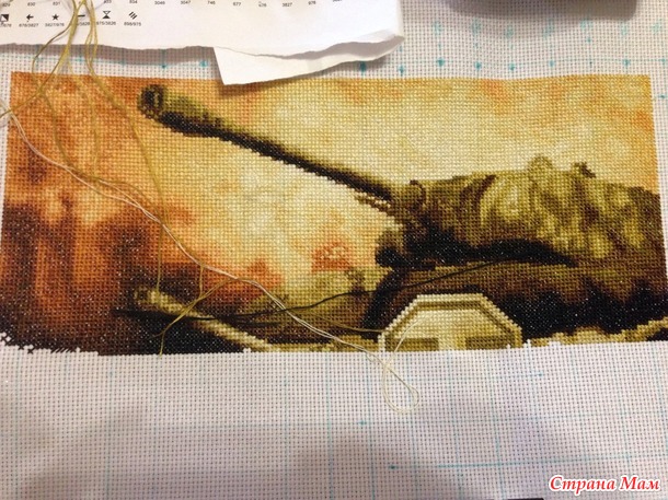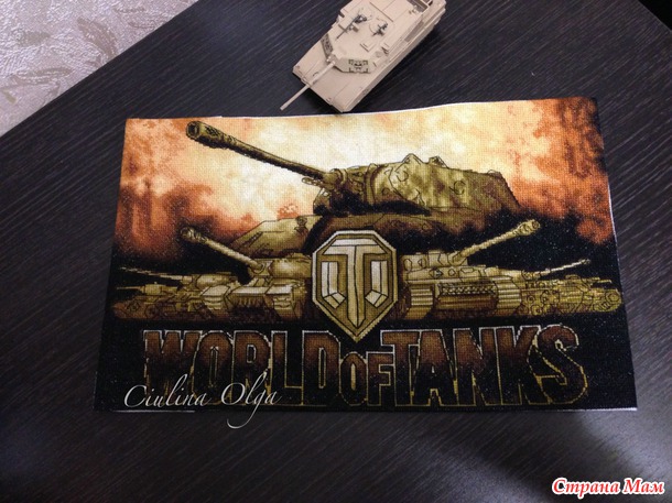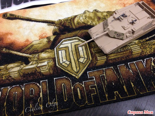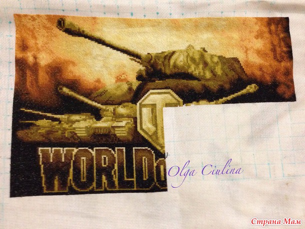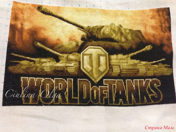 У меня муж тоже ярый фанат танков))) Первое время тоже говорил вышей мне танков, а я все ни в какую, мол красивых схем нет, а про то чтобы заказать схемку я как-то не подумала... Потом нам подруга нарисовала масляными красками