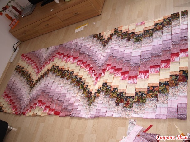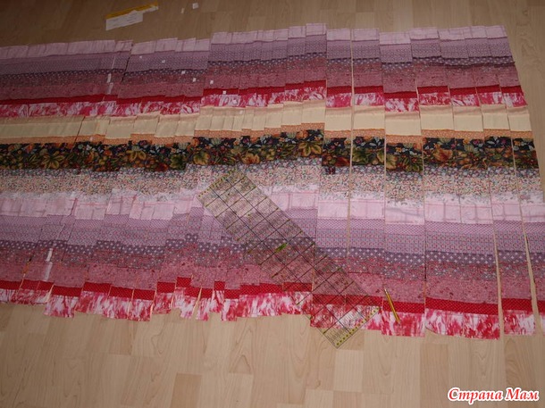 На практике оказалось всё гораздо проще. Дала себе сразу настрой-чем аккуратнее раскрою, тем проще будет собирать, чем ровнее стачаю, тем меньше неточностей будет в полосах и т. д