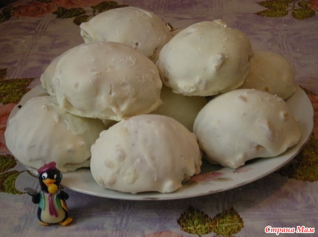 Все смешать и кипятить 2-3 минуты до белого цвета.Холодные колобки облить и дать остынуть.(только я в глазировку добавила чуть орехов)