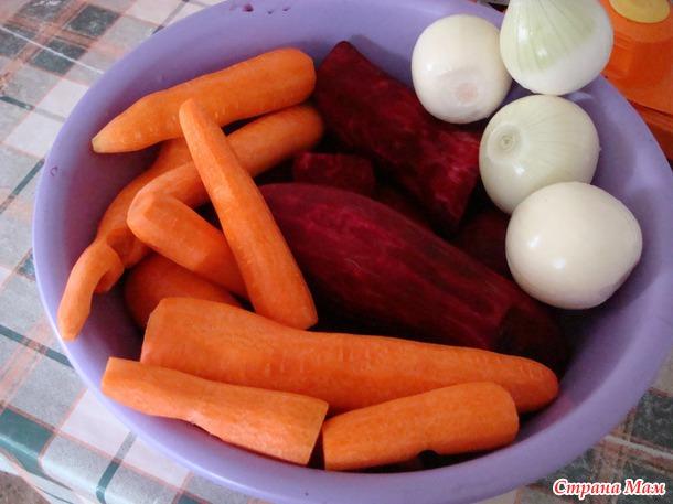 Надергала лука, моркови и свеклы с мыслью о том, что сейчас буду закрывать заправку для борща. Хорошо сказать "буду"... А как? Интернета тогда у нас не было.