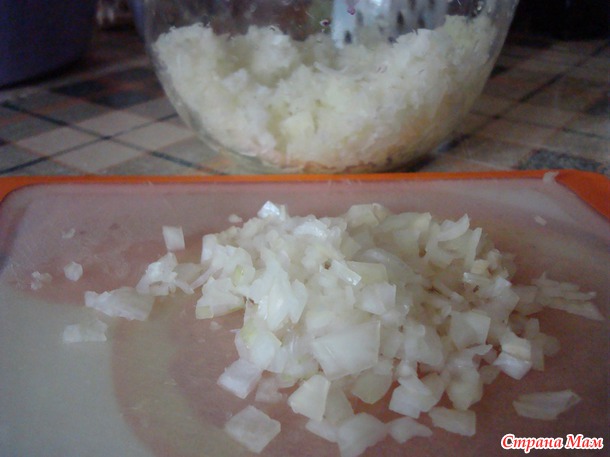 Лук режем кубиками