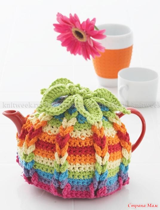 Удивительно яркий чехол для заварного чайника, связанный крючком, украсит любую кухню и станет замечательным подарком!