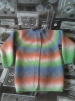 Это моё первое знакомство с Дундагой. Ещё в прошлом году заказывала впервые Кауни. И не все понравившиеся цвета были в наличии. И хозяйка этого богатства уговорила меня попробовать Дундагу. Я согласилась. Она мне на своё усмотрение положила моточек Дундаги. Я бесконечно пряжу крутила в руках, рассматривала и нюхала. У неё такой запах овечки... Сразу кофточка была жёсткая и рыхловатая. Затем я её сваляла в машинке на 40 градусах. Она стала пушистенькая и мягенькая. Спицы №3 Адди. Расход 160 грамм. Дундага №6/1.