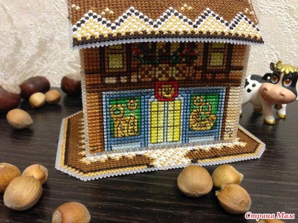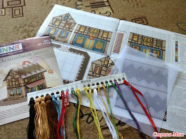 Вышивала по набору фирмы Panna ИГ-1573 "Волшебный домик". Размер готового домика 9,5х10 см, в комплекте пластиковая канва Гамма, мулине 18 цветов. Впервые приобрела набор фирмы Panna, осталось очень довольна, все материалы качественные.