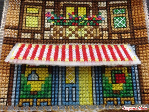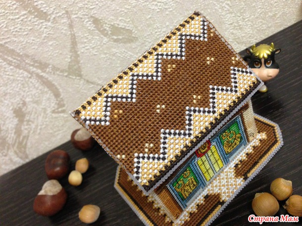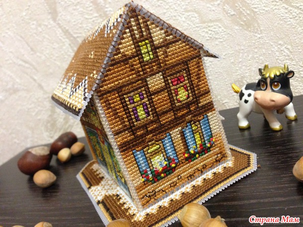 Вот такой домик на пластиковой канве у меня получился.