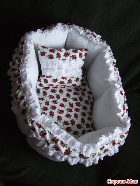 Проба пера. Сшила в первый раз. Мягкая, удобная, нарядная и уютная колыбелька для куклы реборн. Материал Батистовое кружево. Батистовое кружевное полотно. Сатин. Наполнитель синтапух. Ручная работа.