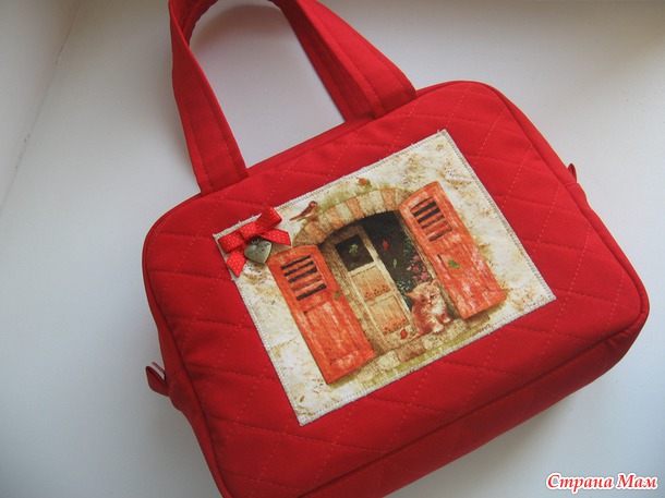 .Всё укреплено дублерином и простегано с синтепоном. Размеры сумочки- 25 см х 19 см х 9 см.