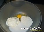 1 ст. сметаны (я беру 1,5, 1 яйцо, 1-1,5 ст. сахара, 2 ст.л муки.