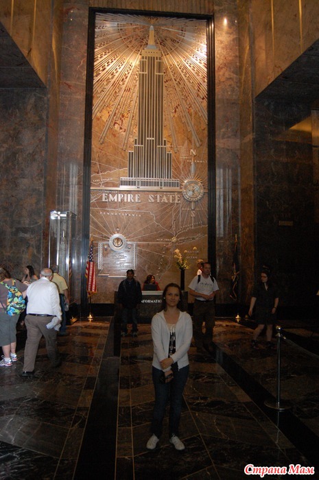 Но все ж, решили мы, что надо б хоть какую достопримечательность в Нью-Йорке посмотреть и пошли на смотровую башню Эмпайер Стейт билдинг (Empire State Building). Забрались мы на самую верхушку этого самого высокого здания Нью – Йорка (после падения Башен-близнецов оно снова стало самым высоким) на обзорную площадку. Добирались мы туда на двух лифтах.