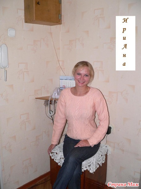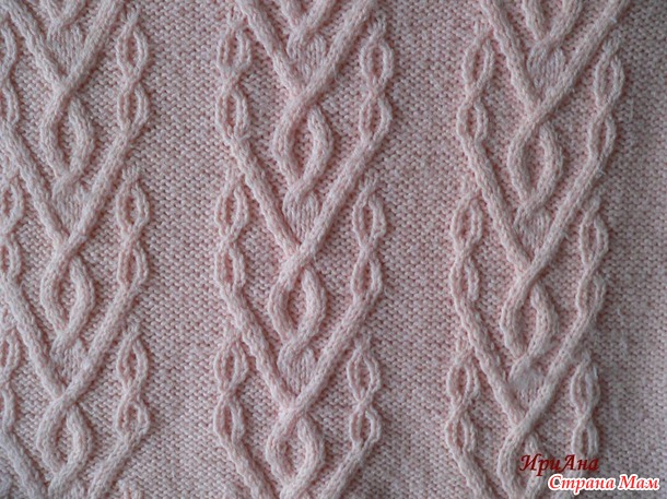 В журнале "Золотая коллекция вязания спицами" дочь выбрала этот рисунок, но просила, чтоб пуловер был полноценным, тёплым, не такой модной крохой. Я держала в руках журнал, а поискала для вас в интернете, так вот кто загрузил, скорее подписал, немного мешает, конечно. Жгуты спереди, на спинке и по одному на рукавах. Пряжа Baby.