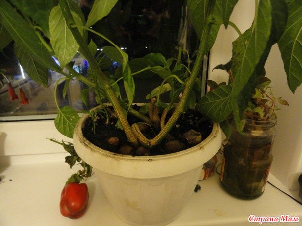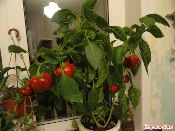 Здравствуйте, любители растений. Хочу вам показать свой перчик, который вырос у меня на подоконнике чисто случайно. А началось с того, что купили болгарский перец для салата, и моя мама когда вычищала из него семена, несколько бросила в цветочный горшок. Горшочек был на тот момент с землей и ждал совсем не такого хозяина. Семена благополучно прижились и мы из любопытства что же вырастит, несколько пересадили в теплицу на даче, а два отростка остались сидеть. И вот вам результат.