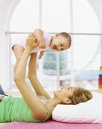 Сядьте на стул, ноги поставьте на скамеечку. Положите ребенка на спинку лицом к себе. Наклоняйтесь к лицу ребенка и удаляйтесь от него.