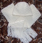 Ещё один комплект, связанный этой зимой. Модель из "Маленькой Дианы" №1 - 2010г. Пряжа ЯрнАрт "Мерино Балки" 100 г. - 100м. Всего ушло 3 мотка. Впечатления от неё подробнее напишу в теме о пряже. Длина шарфа 155см.