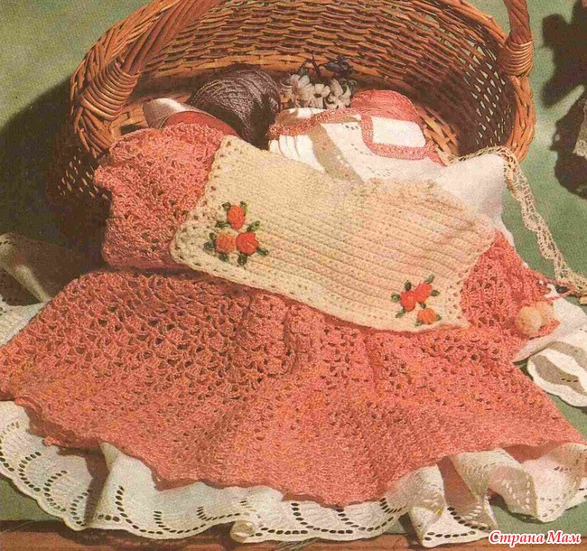 Давным давно увидела это платье в журнале и влюбилась в него. Поскольку своих детей не было, я тогда связала его для маленькой дочки подруги. А сейчас своя моделька подрастает. Не знаю, получится ли у меня связать сейчас, времени катострофически не хватает! Но с вами не могу не поделиться. Платье вяжется исключительно легко и просто! А результат - замечательный! И вышивка не представляет особого труда. В крайнем случае можно заменить пришивными цветочками.