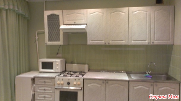 Продолжаю рассказывать про свой ремонт. Кухня 3.1м х 3,64 м. Все то же делали сами. Плиту и холодильник заказали новые, должны на этой недели привезти. Занавески сшила сама.