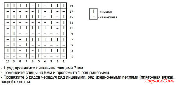 Рисунок для шарфа ( изнаночные, лицевые петли )
