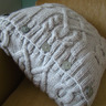 Это полочка, пробный кусочек. Решила вязать целым полотном. Фото пока нет. Пряжа семеновская, Аэлита 781м 100 г, в 5 ниточек, спицы 5.