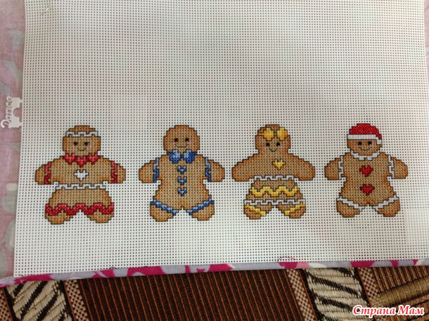Я потихонечку начала готовиться к Новому году. Хотя погода у нас стоит осенняя, холодно и периодически идут дожди. Вот и начала я вышивать таких забавных пряничков для поднятия настроения.