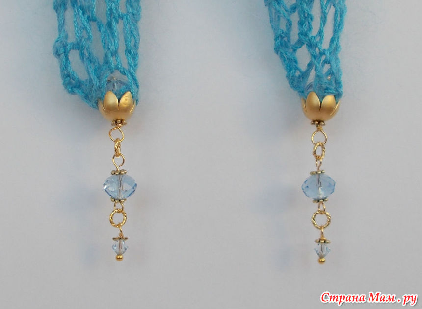 Кончики оформила бижутерными колпачками, хрустальными бусинками и биконусами Сваровски. Металлофурнитура позолоченная пр-ва Южной Кореи, не боится воды.