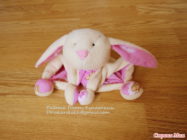 Мордочка у зайчика вышита нитками которые не линяют