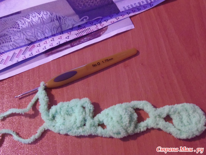 переворачиваем и в основание цепочки начинаем провязывать 3 ст с 2 нак.