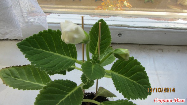 А вот какой подарок готовится мне преподнести завтра одна из моих глоксиньюшек. Цветёт впервые. Приобрела её в июле сеянцем и даже не знала, какого она будет цвета - оказалась белоснежкой. Очень люблю белые цветы!