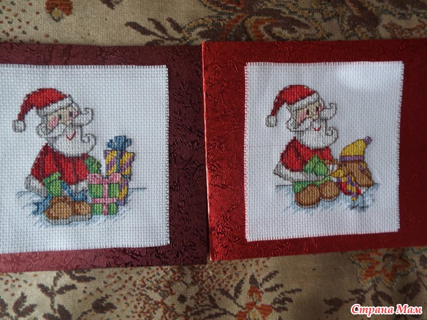 Я тут к Новому году готовлюсь, открытки усиленно вышиваю)))) Планировала десять штук вышить, но хватило меня только на четыре, оказывается самая трудность в том, чтобы подобрать бумагу для открыток, еле нашла что-то более-менее подходящее.