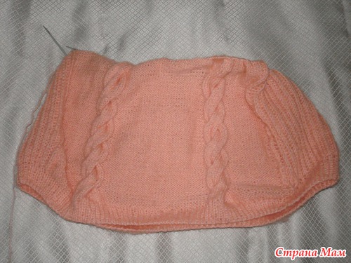.....на перед и спинку набирала по 147 петель, коса из 9 петель, изнаночные полоски по 12 петель.....