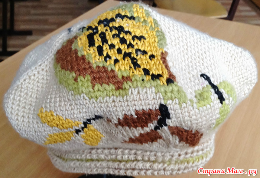 Берет и жаккард на нем связаны жилетным столбиком, о котором вы можете почитать в моих постах https://www.stranamam.ru/post/8271623/ и https://www.stranamam.ru/post/8511987/.