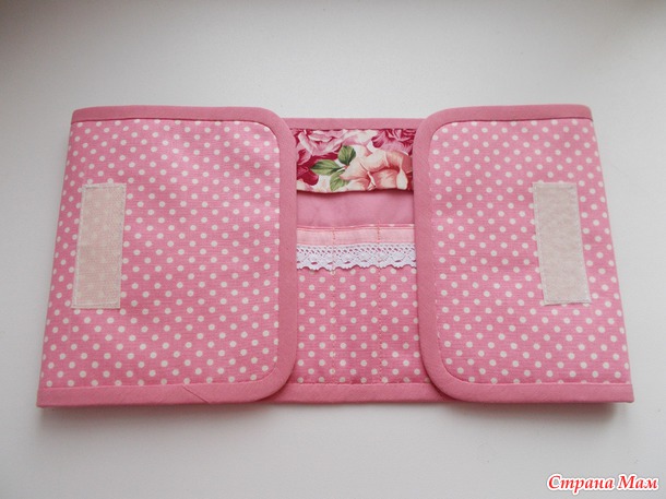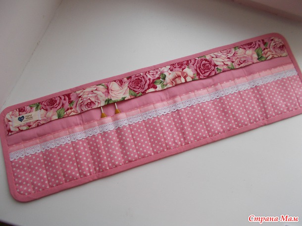 Размеры в сложенном виде 17 см х 15,5 см, в разложенном- 17 см х 58 см. Материалы- американский хлопок, сорочечная ткань, кружево, репсовая лента, для уплотнения- синтепон и дублерин.