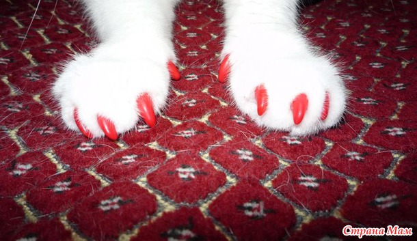 )Сразу же наклеили, клей супер, клеит намертво. Кошка не желала делать маникюр, сопротивлялась, но хозяева были упорны. На первый раз приклеили красненькие.