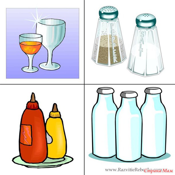 Необходимо найти одну лишнюю картинку из четырех предложенных. Ребенку необходимо сосчитать сколько на каждой картинке изображено предметов, найти лишнюю картинку и угадать какая цифра доминирует в данной карточке. Веселый цветные карточки пом математике. Сосчитай предметы и Назови какой рисунок (цифра) здесь лишний.