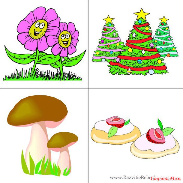 Необходимо найти одну лишнюю картинку из четырех предложенных. Ребенку необходимо сосчитать сколько на каждой картинке изображено предметов, найти лишнюю картинку и угадать какая цифра доминирует в данной карточке. Веселый цветные карточки пом математике. Сосчитай предметы и Назови какой рисунок (цифра) здесь лишний.