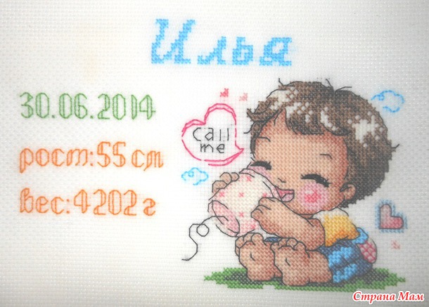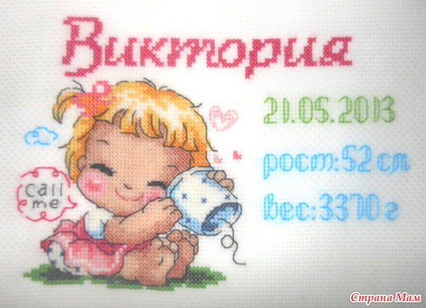 Вышивала эти метрики на заказ. Они для двоюродных братика и сестрички.