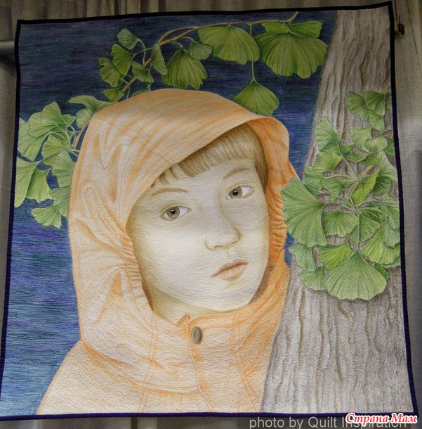 Квилт под названием "Под деревом гинкго", автор - Таня Браун, Калифорния. Оригинальный дизайн и машинная стежка.