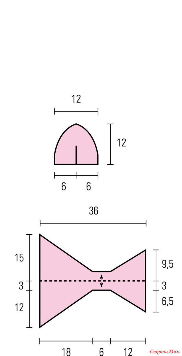 Чтобы получить изделие на 1 размер больше/меньше указанного, надо прибавить/убавить 2 см (6 р.) в ширину и 2 см (6 п.) в длину.
