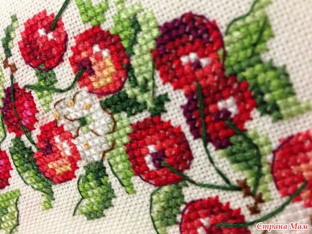 Хотя на улице у нас наступила по-зимнему холодная погода, даже снег выпал, а я еще вышиваю "летние" задумки.