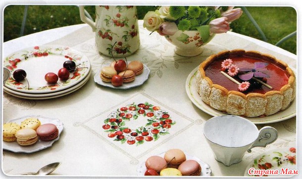 Я планирую эту красоту оформить в виде наволочки на диванную подушку. В оригинале этот венок оформляется в скатерть. Вот посмотрите какая красота: