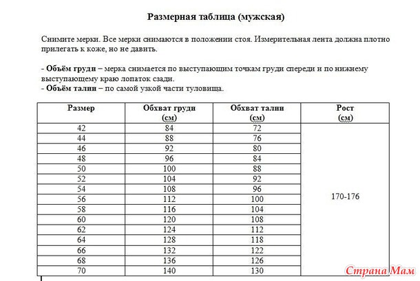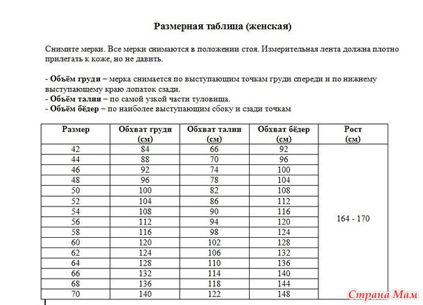 Размерные таблицы: