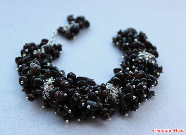 Браслет из граната с посеребренными крупными бусинами. Так что-то он у меня долго делался, что я к нему прикипела, влюбилась и оставила себе