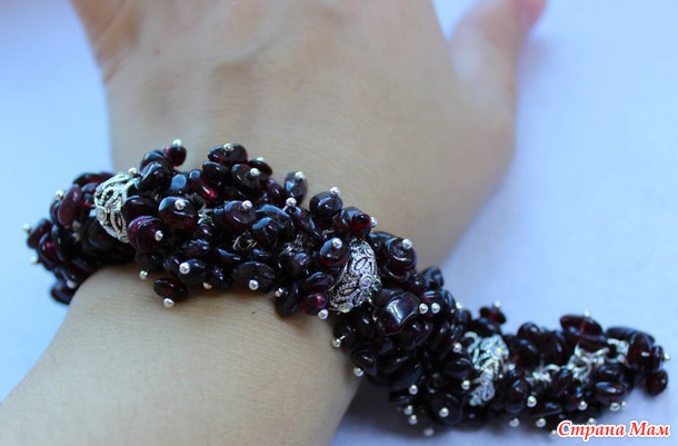 Браслет из граната с посеребренными крупными бусинами. Так что-то он у меня долго делался, что я к нему прикипела, влюбилась и оставила себе