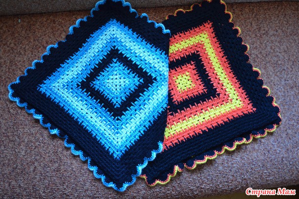 Пряжа Камилла, акрил. Квадрат -узор "Афганский цветок", нижняя сторона - бабушкин квадрат с вытянутыми петлями. Крючок №2