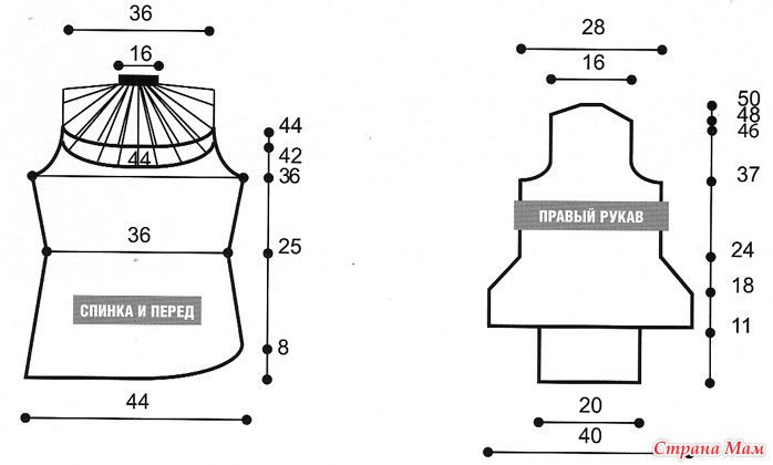 ЛЕВЫЙ РУКАВ: вязать в зеркальном отражении.
