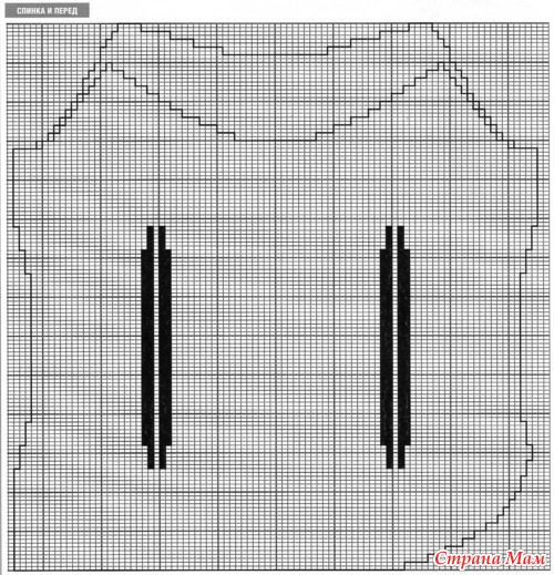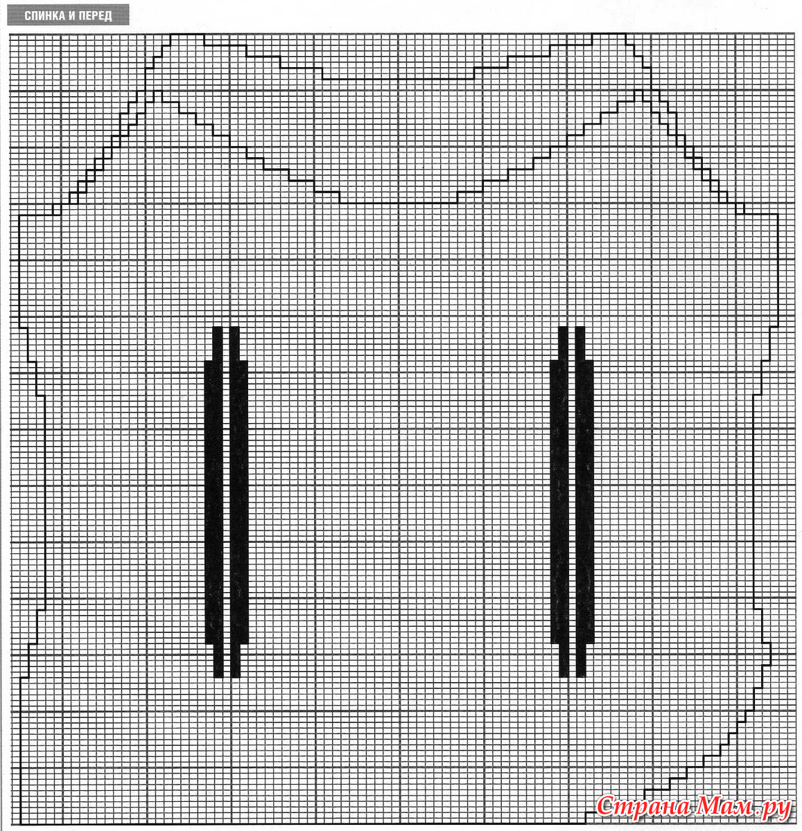 СПИНКА/ПЕРЕД: вязать лиц. гладью по схеме на спицах №2,5.