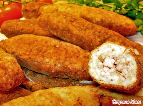 Чтобы зразы не потрескались при жарке, советую сначала обмакнуть их в яйцо, а потом