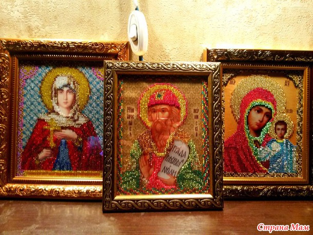 К сожалению, со временем информация о фирме-производителе схемы, а также размеры картин и икон забывается и теряется, так как практически все подарила близким людям. Поэтому, да простят меня модераторы - все картины и иконы - ткань атлас, бисер Чехия, страна производитель - Украина. Вот и вся информация..